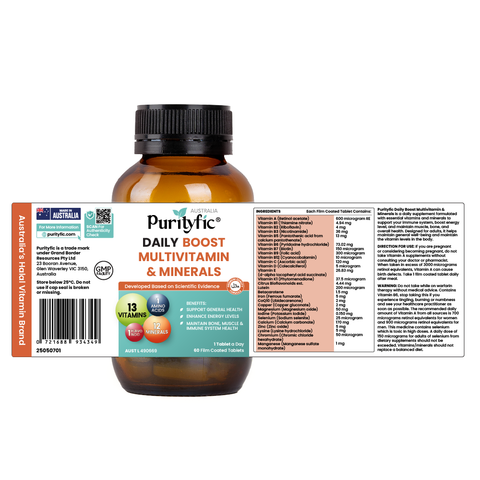 PURITYFIC Daily Boost Multivitamin and Minerals (60 Film Coated Tablets)